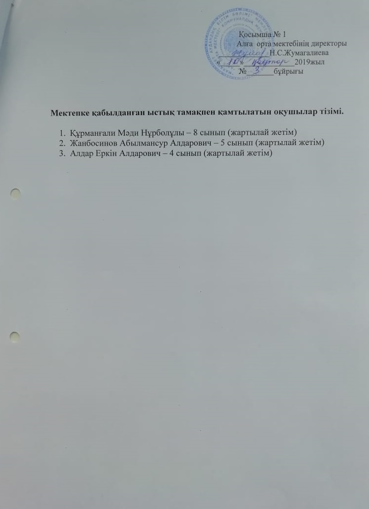 Мектепке қабылданған ыстық тамақпен қамтылған оқушылар тізімі