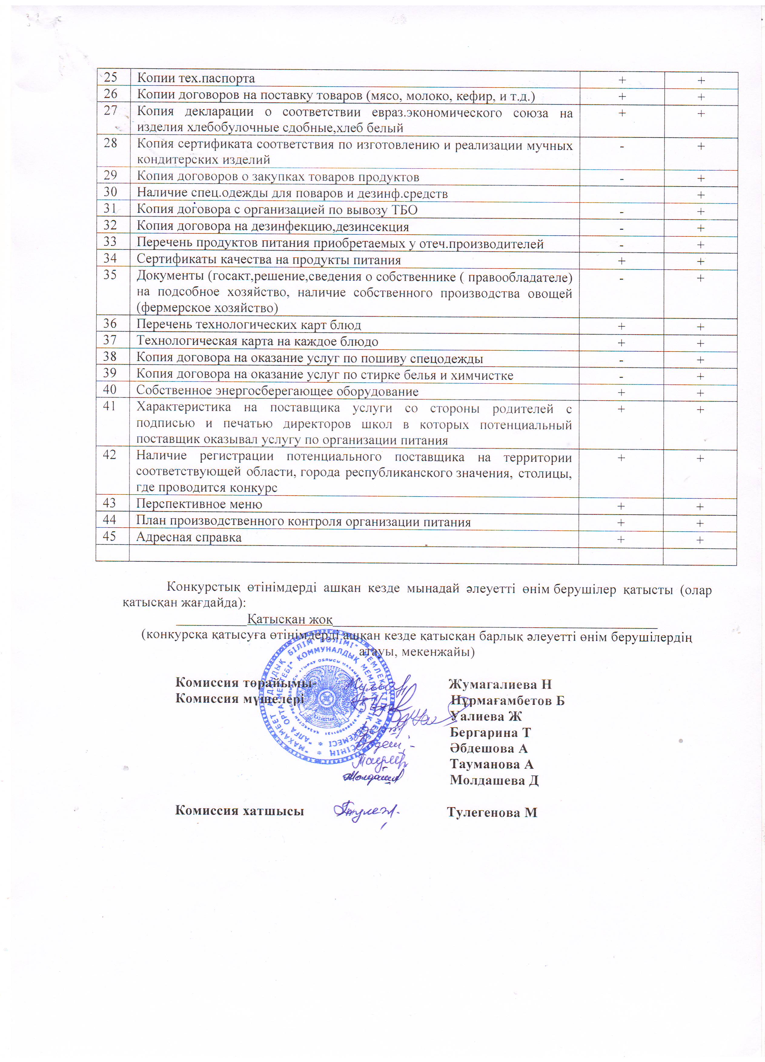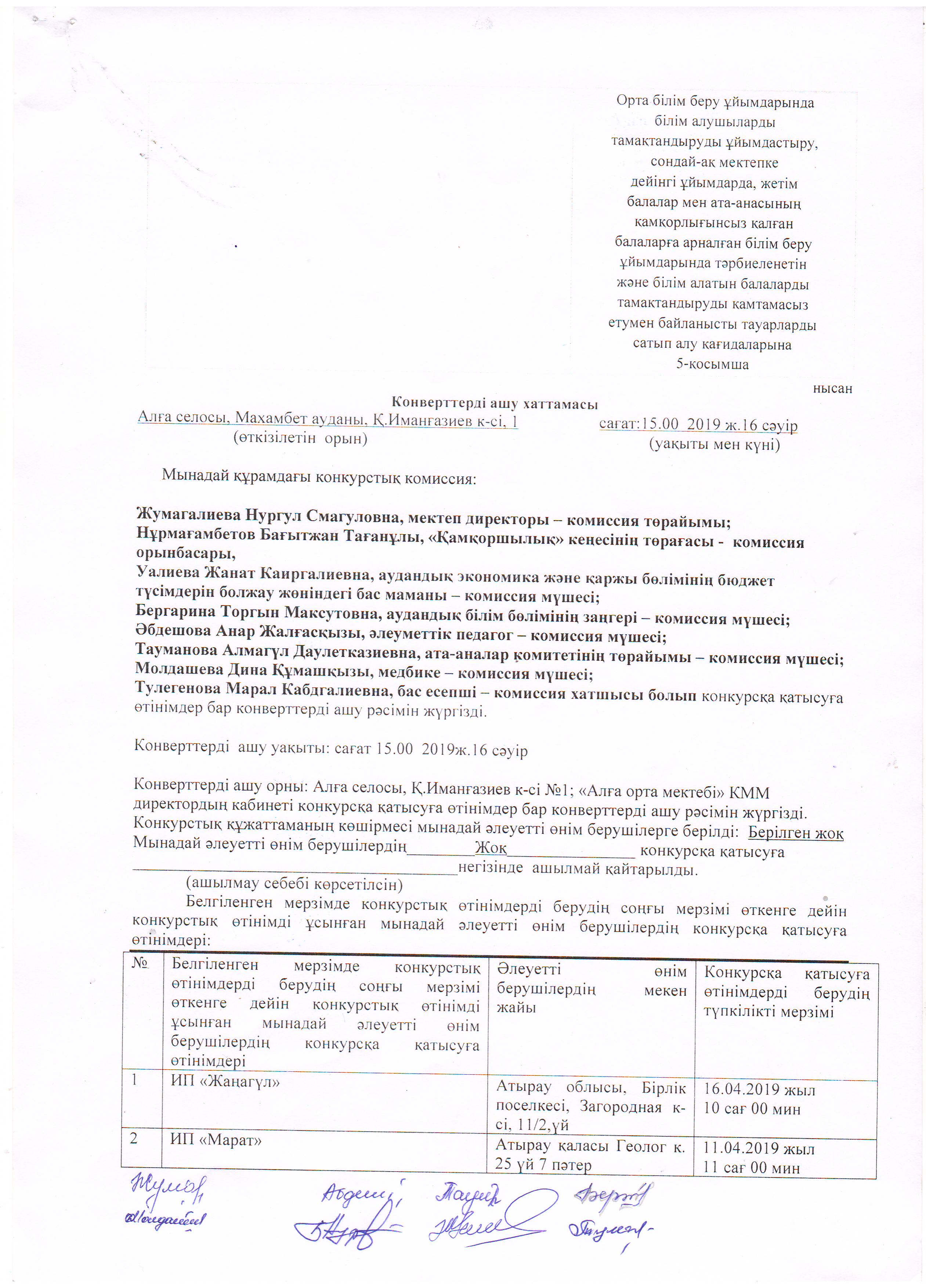 Тамақтандыруды ұйымдастырудың конвертті ашу хаттамасы 18.04.19