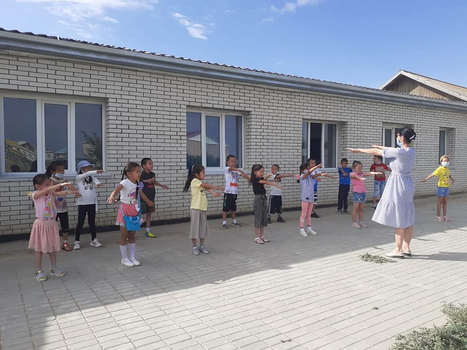 Алға орта мектебі жанындағы жазғы лагерде 1-сынып оқушылары демалуда