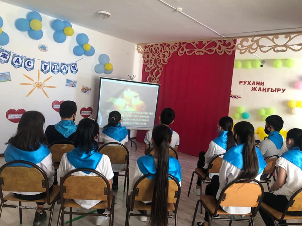 "Жас Ұлан" лагер тынығушылары жұмысын таңертеңгілік тренинг өткізіп, видеоролик тамашалап, өз ойларын ортаға салды