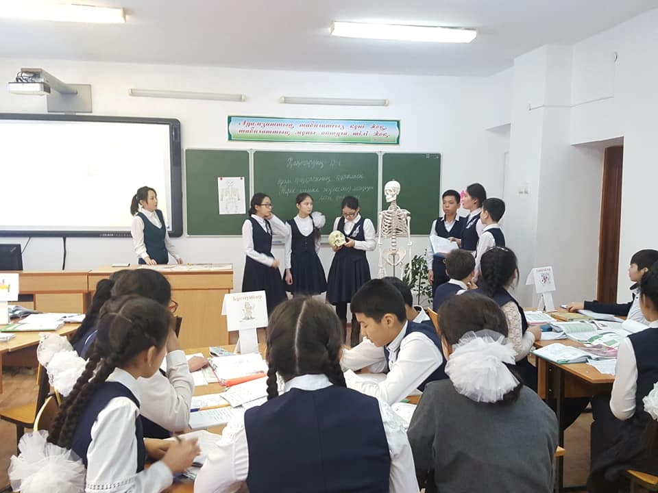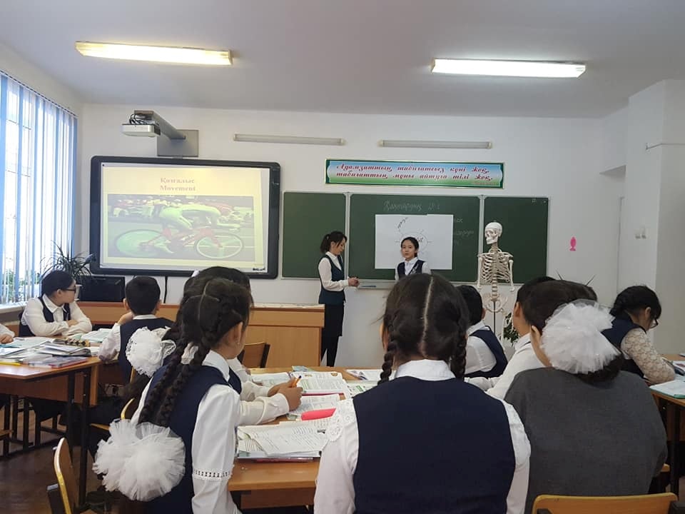 Бүгінгі күні онкүндік аясында Д.Тулепова 8-сыныптарға аталған бағытта жасап жатырған жұмысының көрінісі ретінде ашық сабақ ұсынды. Сабақ өте керемет өтті. Сабақтың өне бойынан оқу мақсатына бағытталған тапсырмаларды көрдік жəне сол тапсырмаларды орындау арқылы оқушыларымыз нəтижеге жетті. Тағы бір айта кетерлігі, оқушыларымыз ағылшын тілінде терминдерді айтып, бірін бірі бағалап қана қоймай, Kahoot бағдарламасымен тест жұмысын орындады. Оған қоса, мұғалімдеріміз пəн бойынша сыныптан тыс шараларды да өткізуде. Атап айтар болсақ, тарих пəні мұғалімі Мажиева Айнұрдың "Тарихи тұлға -Құрманғазы" тақырыбындағы шарасы Елбасымыз ұсынған жалпыұлттық патриотизмнің өзегіне айналған "Туған жер" бағдарламасымен ұштасып жатырған болса, қазақ тілі мен əдебиеті пəнінің мұғалімі Сағидолла Гулдананың "Зерделі оқушы-2019" тақырыбында өткізген интеллектуалдық сайысы оқушылардың білімге деген құштарлығын арттыруға, білімнің ең ұлы күш екендігін саналарына сіңіруге бағытталған.