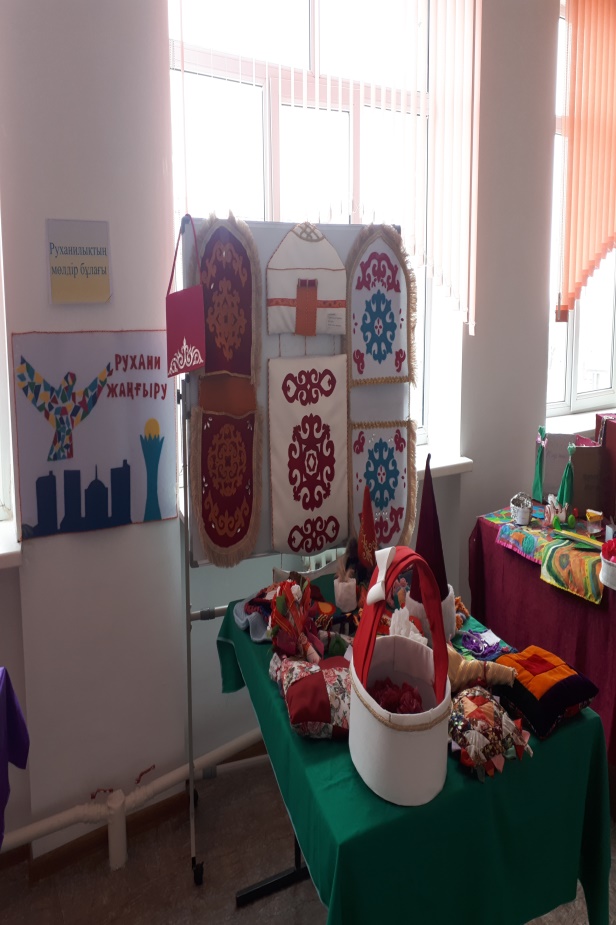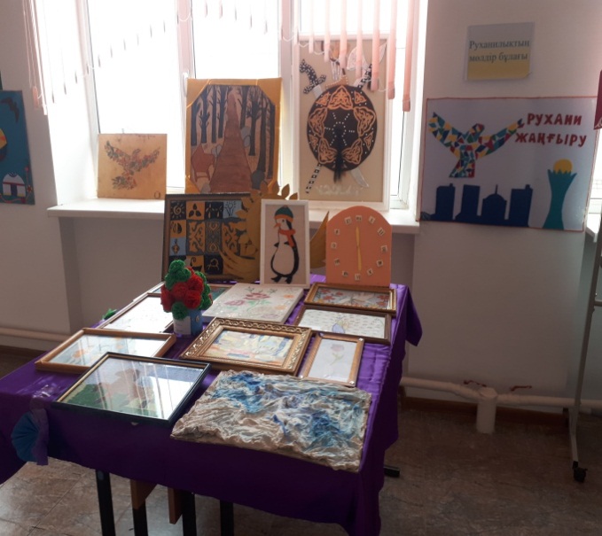 1-ақпаннан бастап технология пәні мұғалімі Б.Ашимова ұйымдастырған «Руханилықтың мөлдір бұлағы» атты тақырыпта ана, мейірім, бейбітшілік, достық туралы балалардың шығармашылық жұмыстарынан, яғни қолөнер бұйымдарынан мектебімізде көрме жасақталып, оған оқушылар зор ықыласпен қызығушылық танытуда.