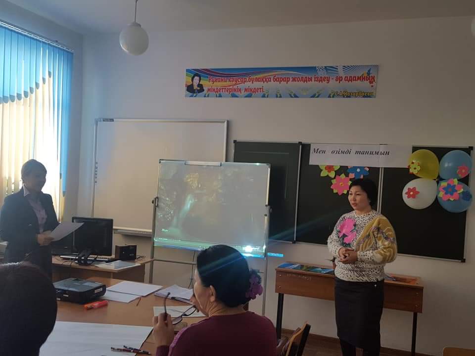 4-ақпан күні онкүндіктің тағы бір жалғасы ретінде оқушылармен жоспарланған жұмыстарды бастамас бұрын, келер ұрпақ қоғам талабына сай тәрбие мен білімді мектептен алса, ал мектептің жүрегі-ұстаз екені баршамызға аян. Осы тұрғыда сапалы білім,саналы тәрбие берушілерге,яғни Алға орта мектебі ұстаздарына «Мен өзімді танимын» атты тренингті өткізуді жөн көрдік. Мұғалімдеріміз шара барысындағы тренингтен өз бойларына сенімділік, ал бір-біріне сүйіспеншілік сезімге бөленіп, серпіліп шықты.Үнемі жұмыс, оқушыларға қайтсек саналы тәрбие, сапалы білім беру мақсатында жүрген ұстаздарға бұл тренинг керемет әсер қалдырды деген ойдамыз. Шараны өткізушілер өзін-өзі тану пәні мұғалімдері: Умбетова Замзия Айповна мен Жумагалиева Мая Смағұлқызы. Тренинг соңында мектебіміздің ұстаздары өздеріне керемет көңіл-күй сыйлағаны үшін алғыстарын, риясыз сүйіспеншіліктерін білдіріп жатты.