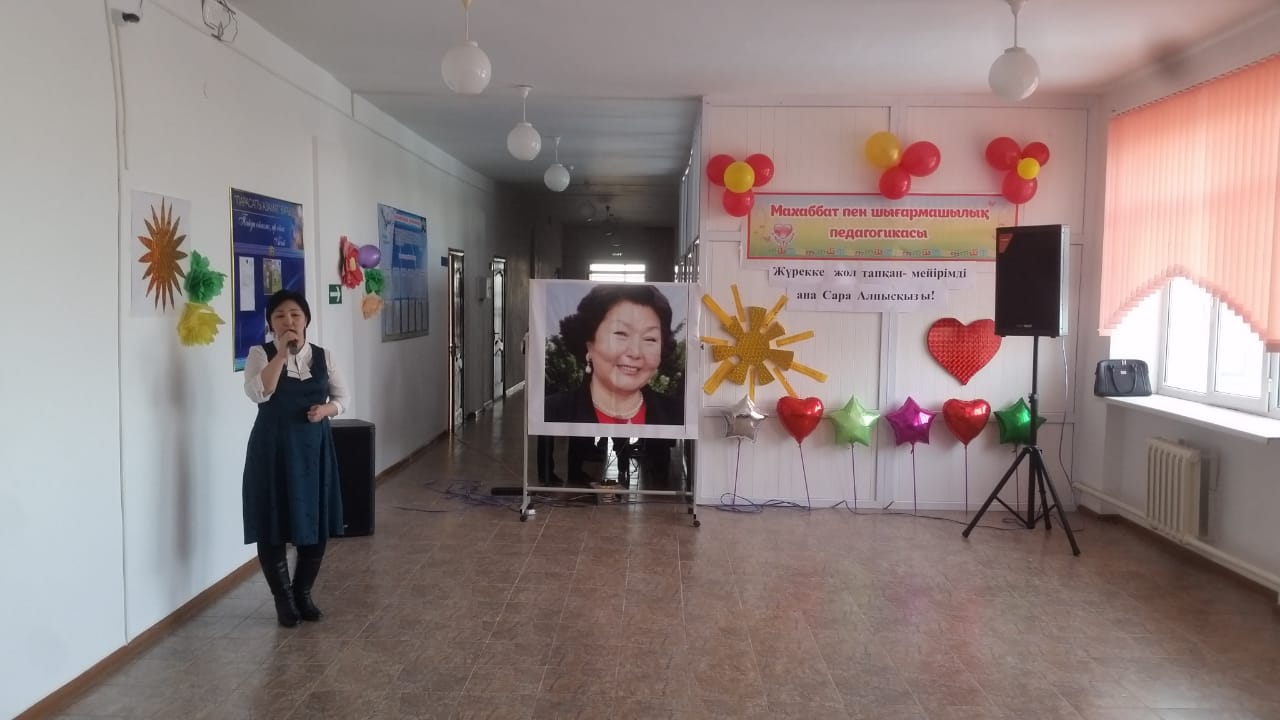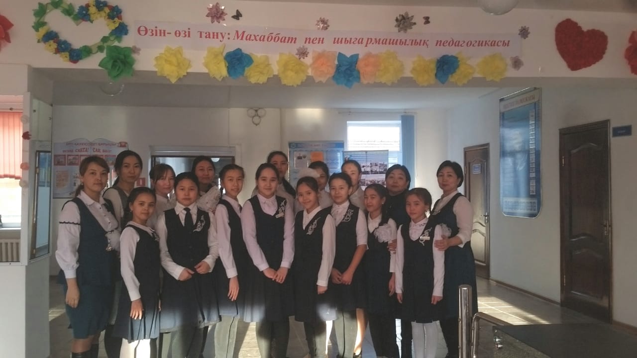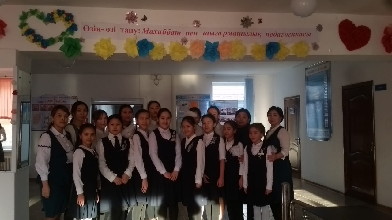 12-ақпан күні 5-10 сыныптар арасында «Өзін-өзі тану: Махаббат пен Шығармашылық педагогикасы» онкүндігінің аяқталуына орай, әрі 12-ақпан «Алтын жүрек анамыз» Сара Алпысқызы Назарбаеваның туылған күніне орай «Жүрекке жол тапқан - мейірімді ана Сара Алпысқызы» атты қорытынды концерт болды. Мақсаты: Махаббат пен шығармашылық аясында оқушыларға махаббат, бақыттың құндылық ретіндегі мағынасы және мейірімді адами қасиеті мен өзара көмек әрекеттері туралы түсінік беріп, қамқорлық жасау, көмек көрсету дағдыларын дамыта отыра, рухани адамгершілік қағидаларын өз бақыты үшін дұрыс қолдана білуге тәрбиелеу болатын. Оған өзін-өзі тану мұғалімдері М.С.Жумагалиева, З.А.Умбетова және бастауыш пән бірлестік жетекшісі Н.Тағаева ат салысты, сонымен қатар мектеп оқушылары да белсене қатысып, өз өнерлерін көрсетті.
