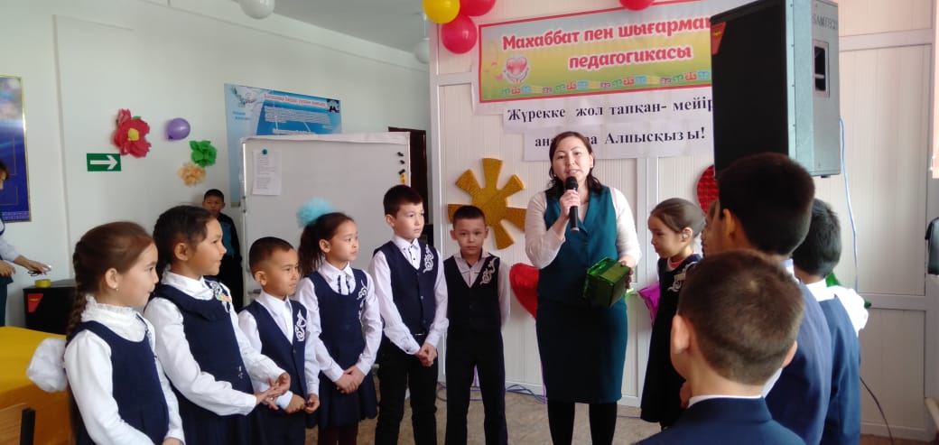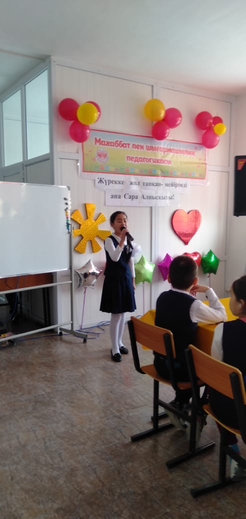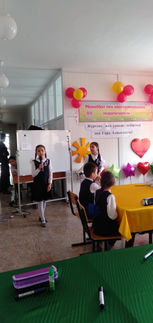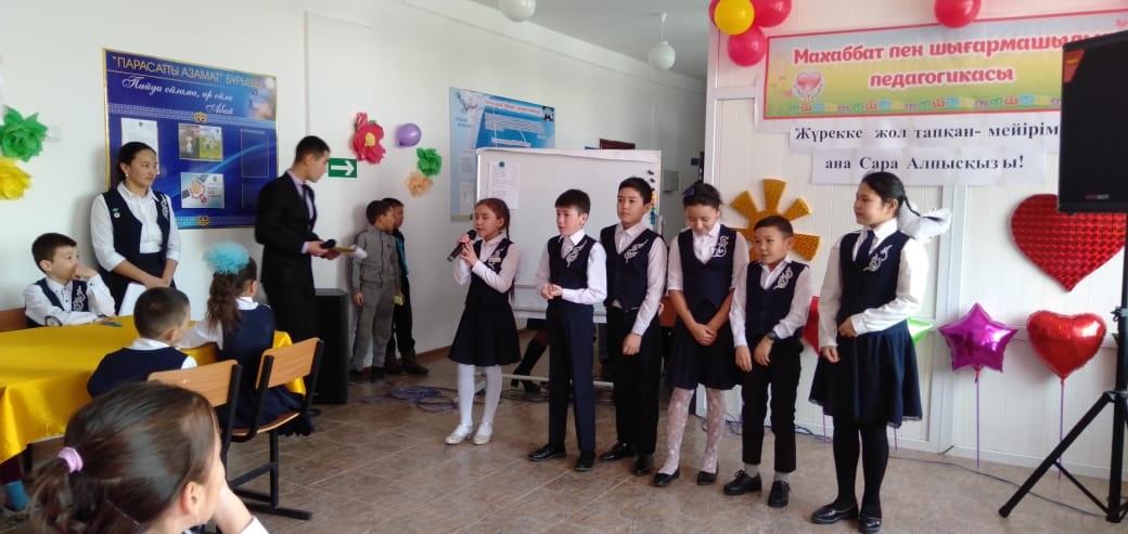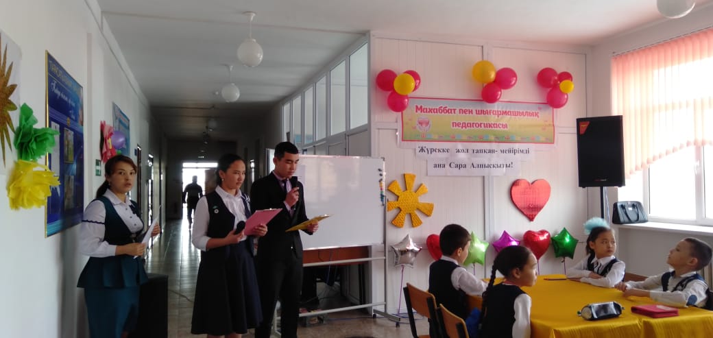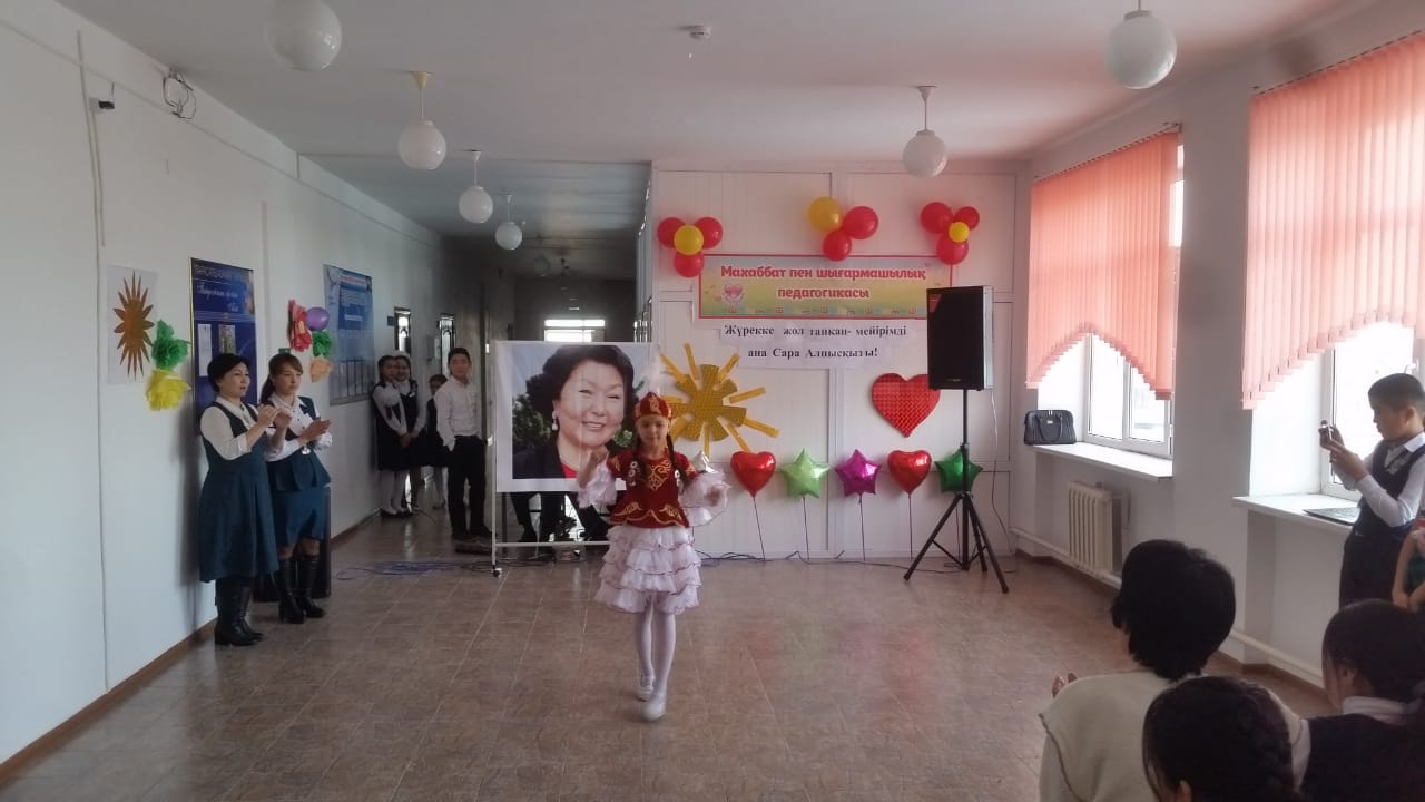 12-ақпан күні 5-10 сыныптар арасында «Өзін-өзі тану: Махаббат пен Шығармашылық педагогикасы» онкүндігінің аяқталуына орай, әрі 12-ақпан «Алтын жүрек анамыз» Сара Алпысқызы Назарбаеваның туылған күніне орай «Жүрекке жол тапқан - мейірімді ана Сара Алпысқызы» атты қорытынды концерт болды. Мақсаты: Махаббат пен шығармашылық аясында оқушыларға махаббат, бақыттың құндылық ретіндегі мағынасы және мейірімді адами қасиеті мен өзара көмек әрекеттері туралы түсінік беріп, қамқорлық жасау, көмек көрсету дағдыларын дамыта отыра, рухани адамгершілік қағидаларын өз бақыты үшін дұрыс қолдана білуге тәрбиелеу болатын. Оған өзін-өзі тану мұғалімдері М.С.Жумагалиева, З.А.Умбетова және бастауыш пән бірлестік жетекшісі Н.Тағаева ат салысты, сонымен қатар мектеп оқушылары да белсене қатысып, өз өнерлерін көрсетті.