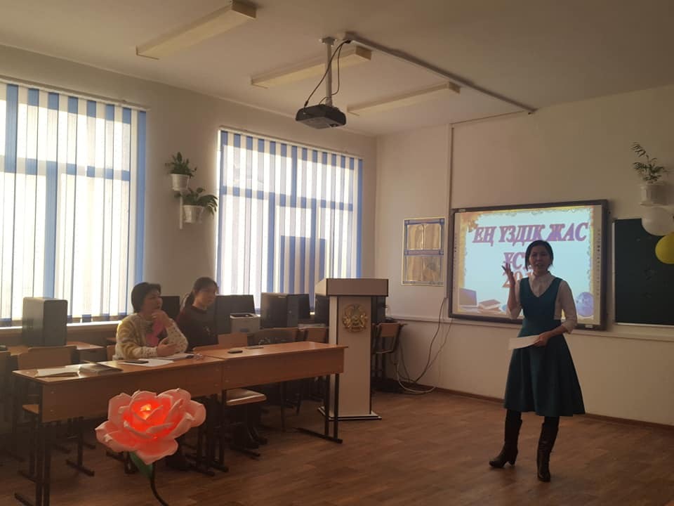 Жаңа доңыз жылының жағымды жаңалықтарының бірі 2019 жылдың "Жастар жылы" болып жариялануы. Мектебімізде елге тұтқа болатын өскелең ұрпақты оқытып, тәрбиелеп, өмірге тезірек араласуына септігін тигізіп жүрген жас мамандарымыз да осы жаңалыққа елең етіп, "оқушыларымыздың бойына терең білім беріп қана қоймай, тұғырлы тұлға болып қалыптасуына жұмылған жұдырықтай күш саламыз",-деп мақсат қойды. Осы орайда мектебіміздегі жас мамандар арасында шығармашыл, жаңашыл жастарды анықтау жəне оларды қолдау мақсатында "Ең үздік жас ұстаз-2019" шарасы болып өтті. Шара төрт турдан тұрды. Жас мамандарымыз шараға тыңғылықты дайындықпен келді. "Ең үздік жас ұстаз -2019" номинациясын физика пəнінің мұғалімі Төлеева Қарлығаш қанжығасына байлады. Шара басталар алдында ортада жағымды ахуал туғызу мақсатында мектебіміздің жас психологы Үржімбаева Жадыра "Ұжымдағы қарым-қатынас" тақырыбында тренинг жүргізді.Жас мамандарымызға егемен еліміздің ұл-қыздарына сапалы білім, саналы тəрбие беруде шаршамай, талмай еңбек етіңіздер, -дегім келеді.