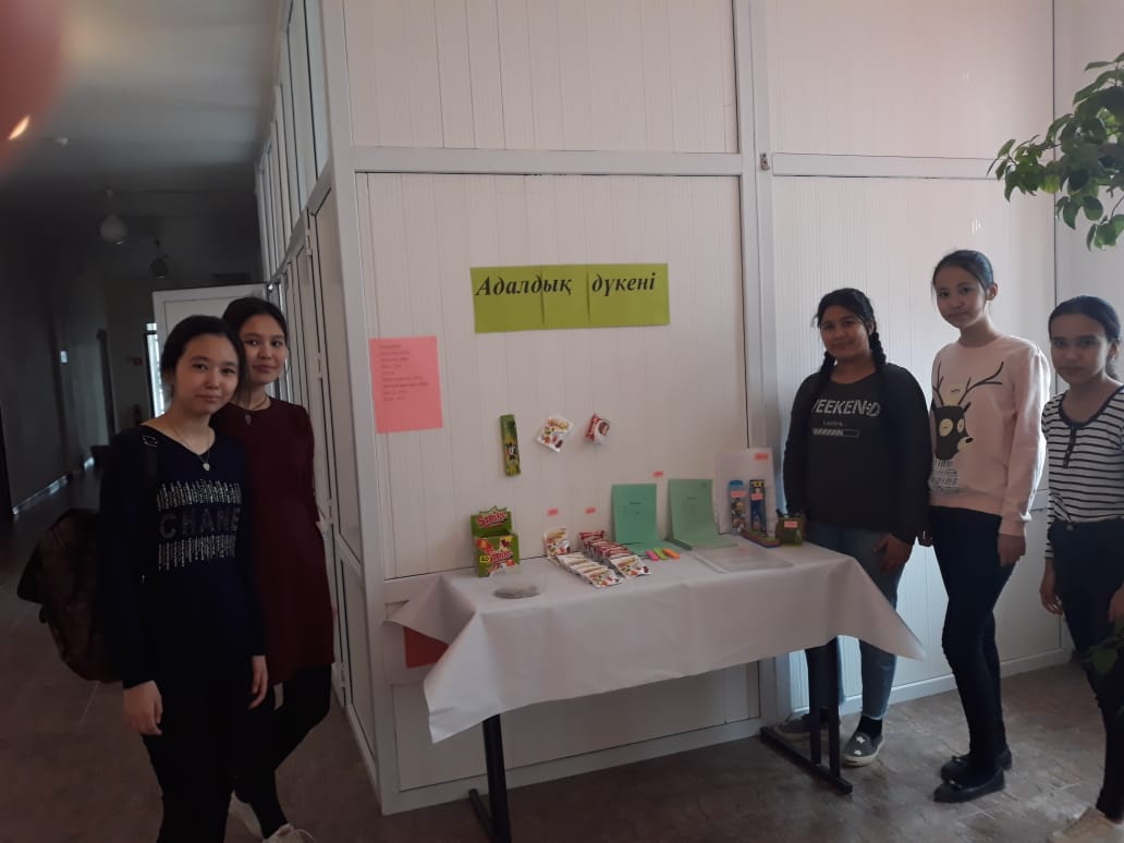 Яғни, дүкенде сатушы жоқ, затты сатып алушылар өз-өздеріне қызмет көрсететін болады. Сол сияқты Алға орта мектебінде де "Адалдық дүкені" ашылды.