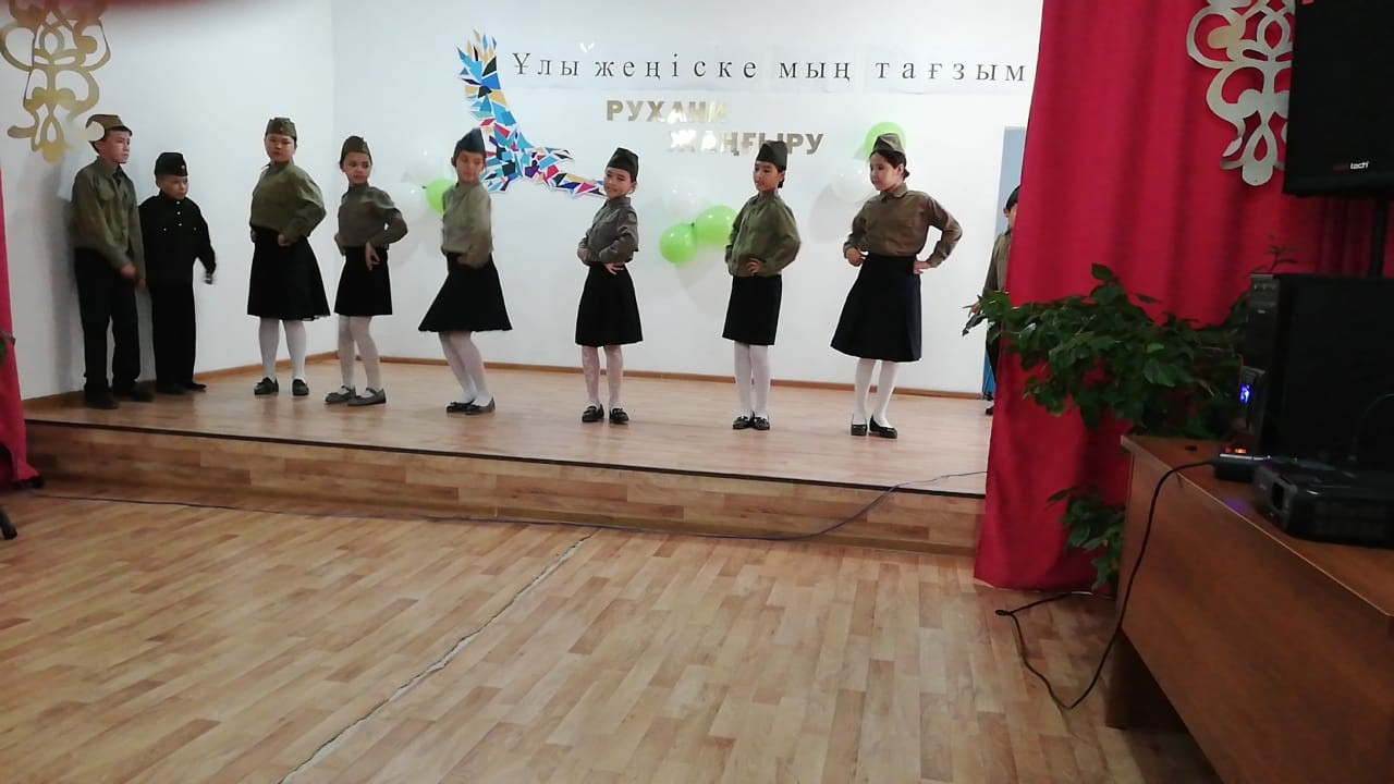 Елбасымыз Нұрсұлтан Назарбаев жастарға арнаған бір сөзінде: «Еліңнің ұлы болсаң, еліңе жаның ашыса, адамзаттық намысың болса, қазақтың ұлттық жалғыз мемлекетінің нығайып-көркеюі жолында жан теріңді сығып жүріп, еңбек ет. Жердің де, елдің де иесі өзің екеніңді ұмытпа!», – деген еді. Бұл сөздерді қайталап оқыған сайын біздегі жас ұрпақтың бойында отансүйгіштік қасиет қандай деңгейде екен деген заңды сұрақ туындайды. Олай болса, құрметті әріптестер, жерлестер! Аға ұрпақ алып берген Жеңіске де бүгінгі күні 74 жыл. Ұлы жеңістің 74 жылдық мерей тойына орай Алға орта мектебінде көптеген шаралар өткізілді. Мектеп алды даярлық тобынан бастап, жоғары сыныптар арасында сынып сағаттар, тәрбие сағаттар өткізіліп, оқушылар бар өнерлерін, Отанға деген сүйіспеншіліктерін, құрметтерін көрсетті. Сонымен қатар, 9-мамыр күні Алға орта мектеп ұжымы салтанатты шеруге қатысып, оқушыларымыз да, ұстаздарымыз да бар өнерлерін ортаға салды.