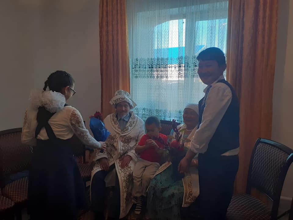 Мажиева Айнұр өзі жетекшілік ететін 8-сыныппен ауылымыздың құрметті ардагерлері Қонысов Әбдуәли мен Күләш апа және Мырзағалиев Бекқали атаның үйлеріне "Батаменен ел көгерер" атты тақырыбында қарттар күнімен құттықтап, сазды бағдарламасын жолдап, оқушыларымыз ақ баталарын алып мәз болып қайтты.