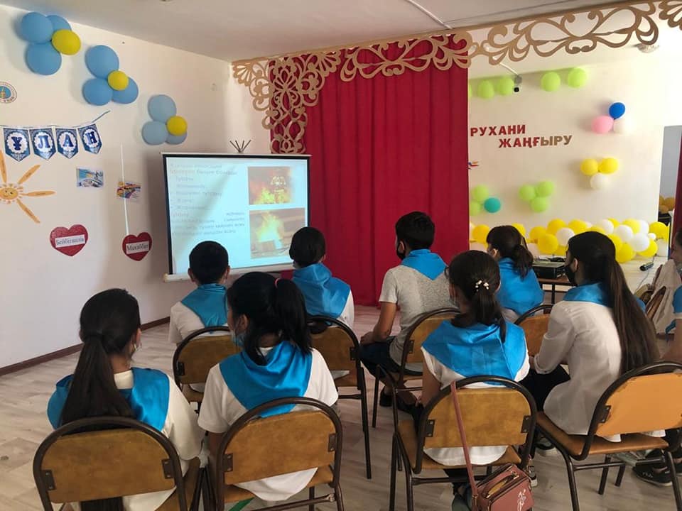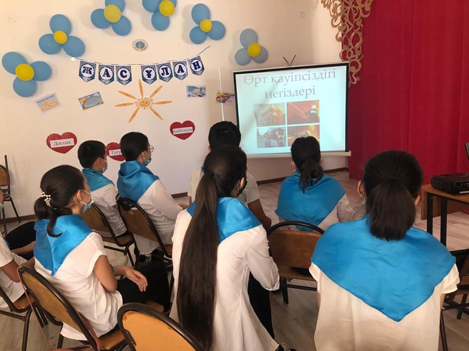 16.06.21 күні "Жас ұлан" лагер тынығушыларына жоспарға сай Өрт қауіпсіздігі және жолда жүру ережелері мен жазғы мезгілдегі су қауіпсіздігі жөніндегі түсіндірме жұмыстары жүргізіліп, бейнероликтер көрсетілді. Оқушыларға ойталқы ретінде кейс сұрақтар беріліп, өз ойларымен жауаптарын ортаға салды.