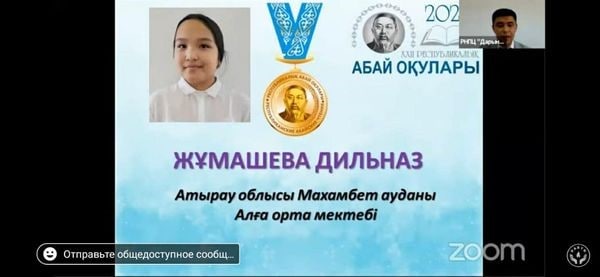 24-27 тамыз аралығында өткен Республикалық ХХІІ "Абай оқулары" байқауына қатысып, "Көңілім әнді ұғады" номинациясы бойынша Махамбет ауданы Алға орта мектебінің 9-сынып оқушысы Жұмашова Дильназ (жетекшісі - Мукатова Лайла) ҚР Білім және ғылым министрлігінің "Алтын медалін" жеңіп алды.